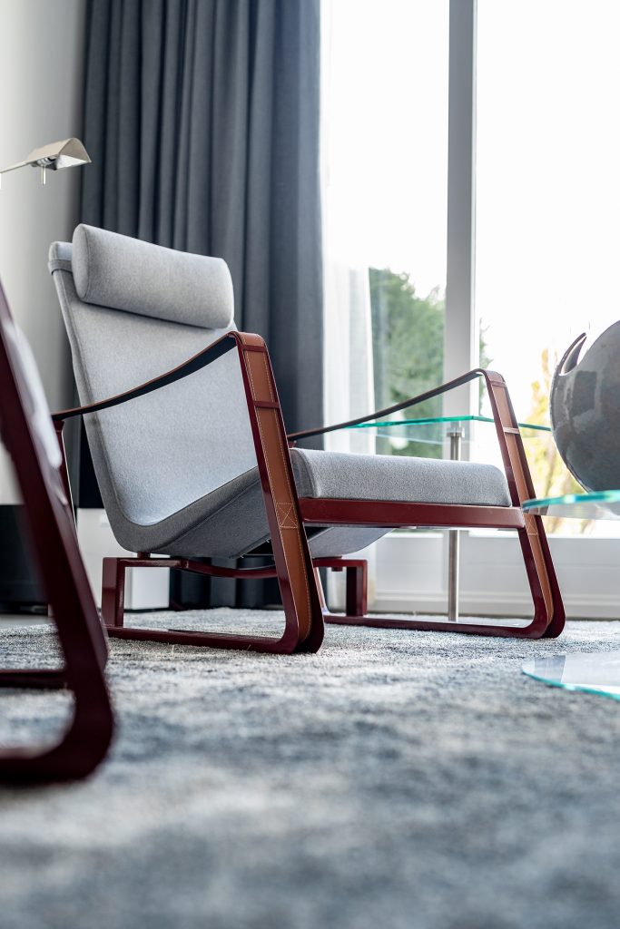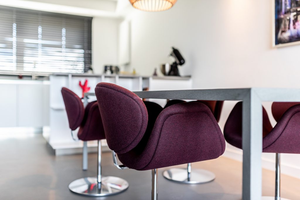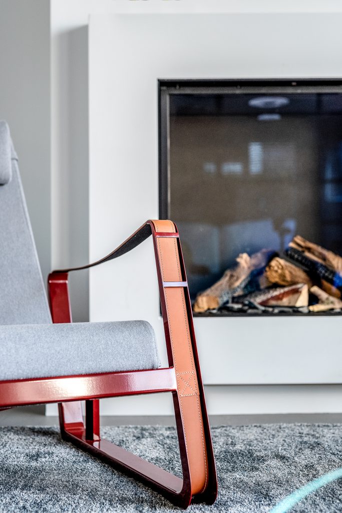 Na een intensief ontwerptraject is gekozen voor een geheel nieuwe benadering van de leefruimtes, waarbij rust, verbinding en moderne luxe centraal staan. De haard werd opnieuw het warme middelpunt van de woonkamer; hiervoor ontwierpen we een nieuwe omlijsting met een moderne gashaard die eenvoudig op afstand te bedienen is en een hoog rendement levert. Om de woonkamer, eetkamer en keuken visueel met elkaar te verbinden, zijn koven aangebracht in de oevergang tussen muur en plafond. Deze zorgen voor een interessant plafondbeeld, brengen spanning in de ruimte en creëren tegelijkertijd de mogelijkheid om subtiele, randloos ingebouwde armaturen te plaatsen.