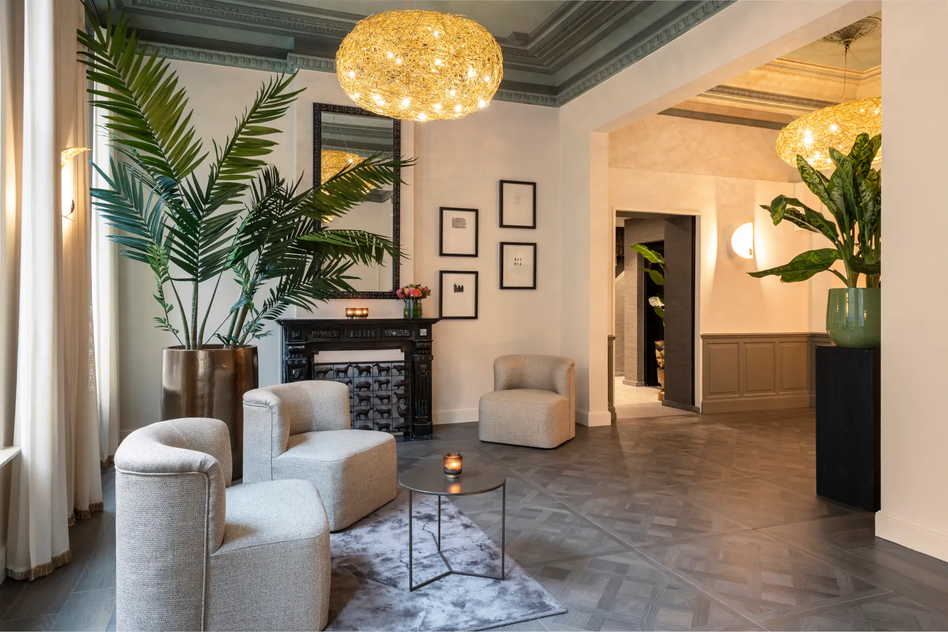 Het resultaat is een interieur dat moderne elegante combineert met de authentieke charme van Brugge. Warme tinten, rijke stoffen en subtiele contrasten creëren een uitnodigende, tijdloze sfeer waarin gasten zich direct thuis voelen.