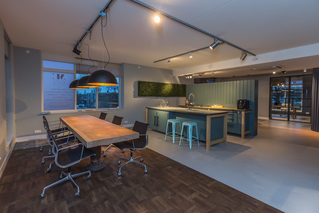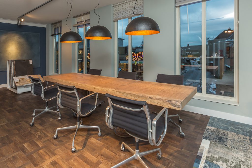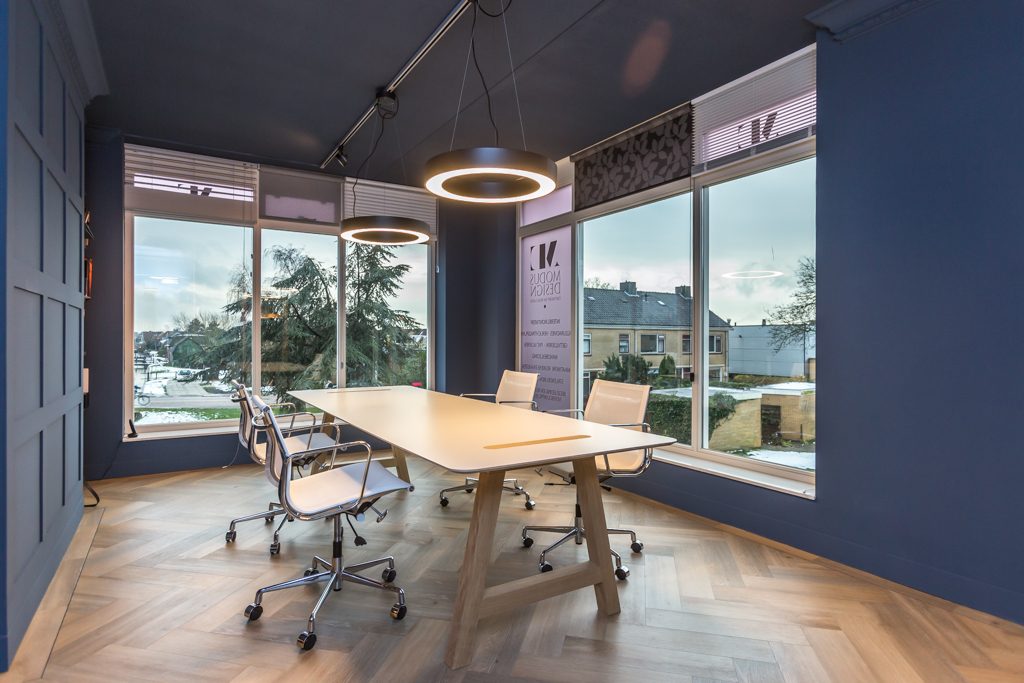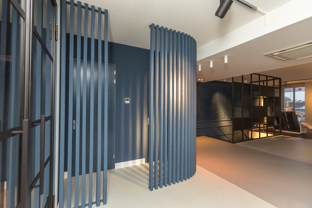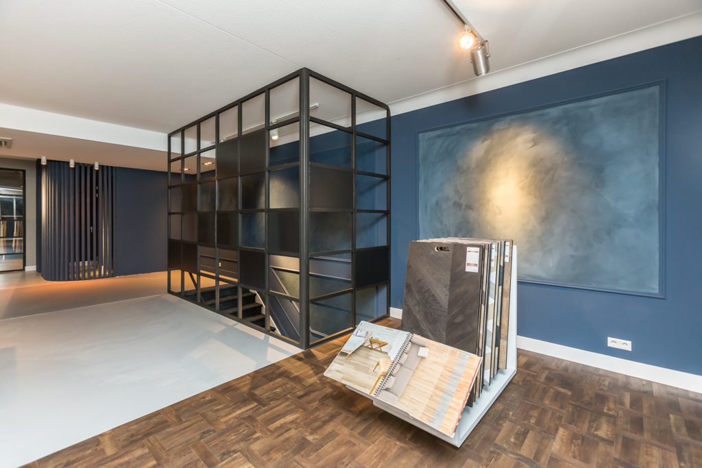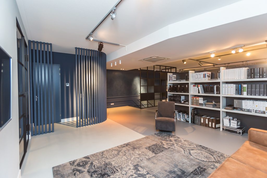Voor een bedrijf gespecialiseerd in vloerafwerking, raambekleding en interieurproducten ontwierpen wij een studio die zowel functioneert als werkruimte én als inspirerende omgeving voor klantadvies en ontwerp.