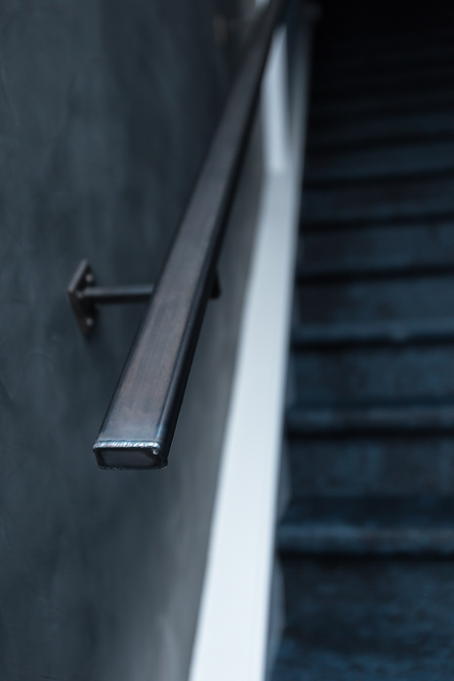Ons ontwerp richtte zich op het creëren van sfeer, balans en beleving. Door de ruimte op te delen en te werken met harmonieuze kleurvlakken, ontstond direct meer rust. De wand bij de trap kreeg een retro afwerking met verschillende structuren in één tint, waardoor er subtiel diepte en karakter werd toegevoegd. Rondom de trap ontwierpen we een stalen frame dat de ruimte richting geeft en het geheel een krachtig architectonisch accent geeft.